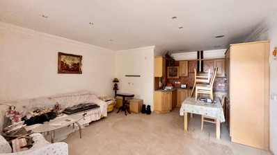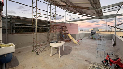Upstairs offers a spacious bedroom, another storage room, and two roof terraces, with the potential to convert this floor into three bedrooms.