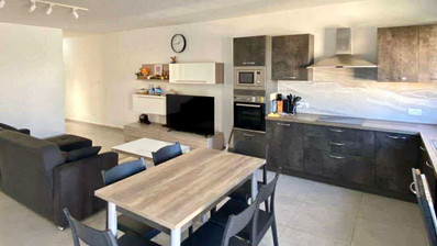 The open-plan kitchen, living, and dining area offers a bright and comfortable layout, perfect for everyday living.